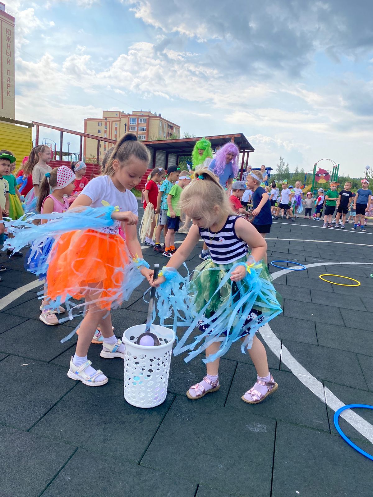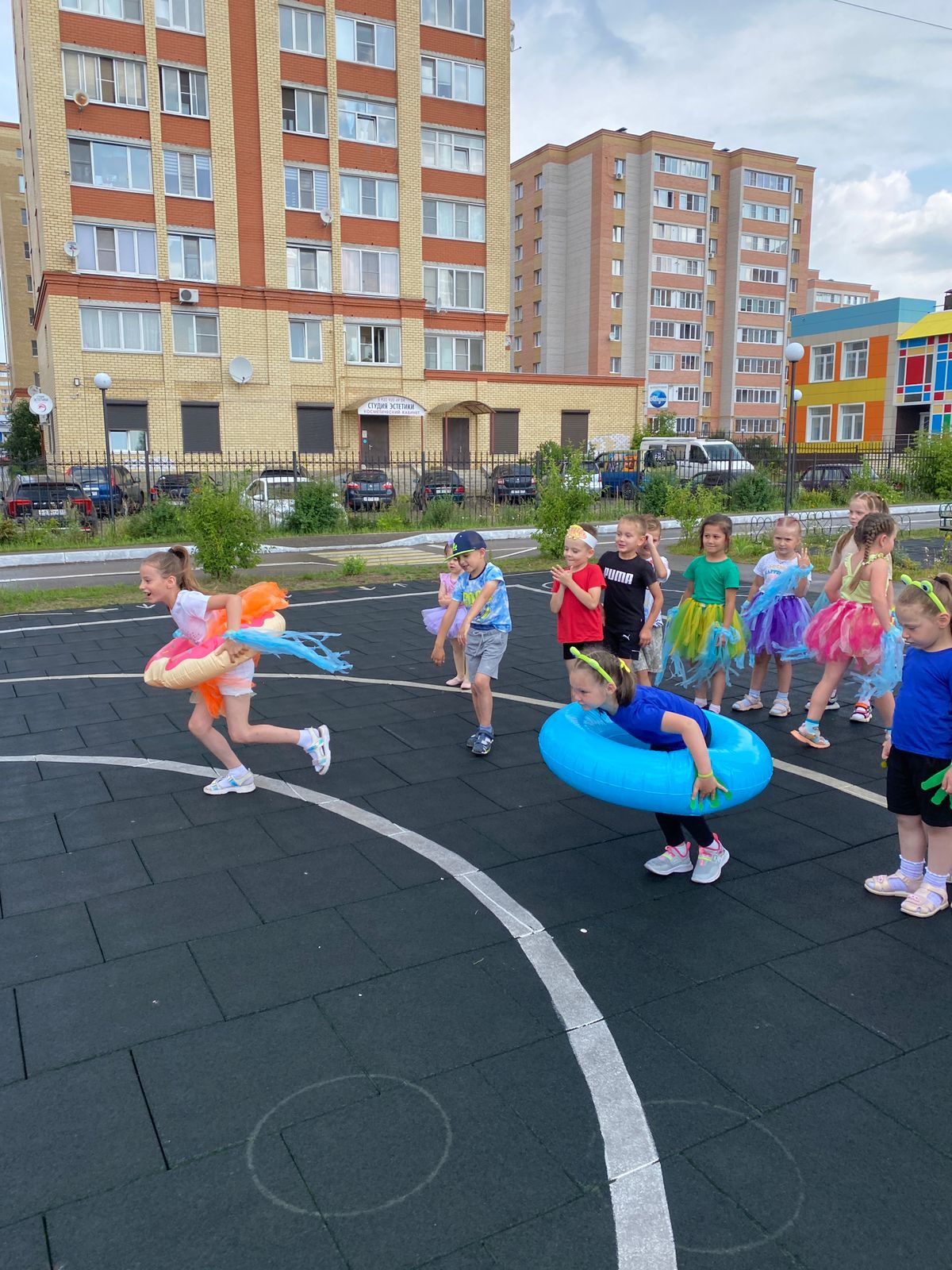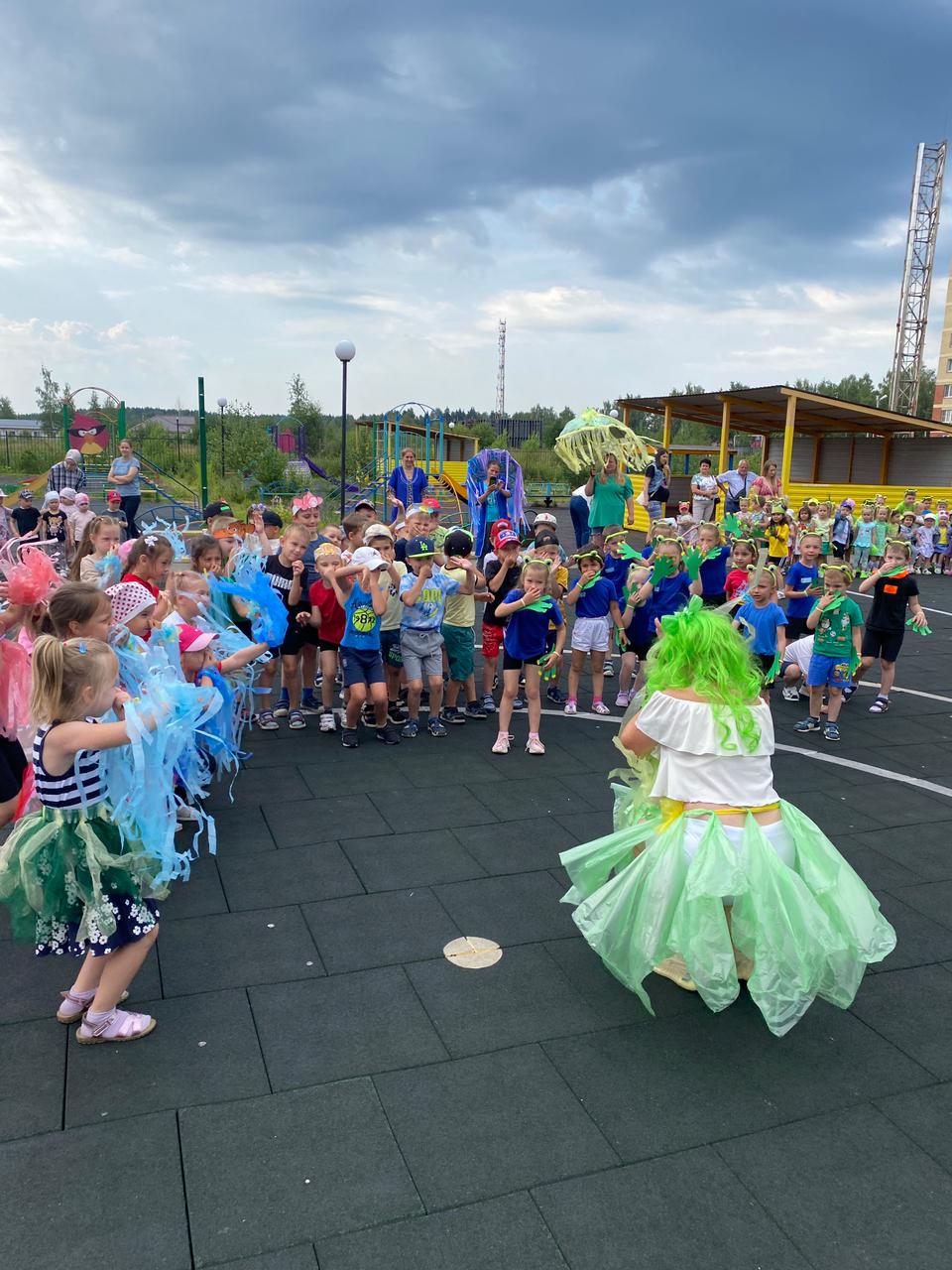 Наши дошколята встретили долгожданных гостей, участвовали в различных приключениях: «попали в подводное Царство» (на море), где окунулись в «пучину ярких событий» - играли в игры, танцевали, пели песни о лете, о морских обитателях, проводили эстафеты, вспоминали морских жителей, пускали мыльные пузыри.