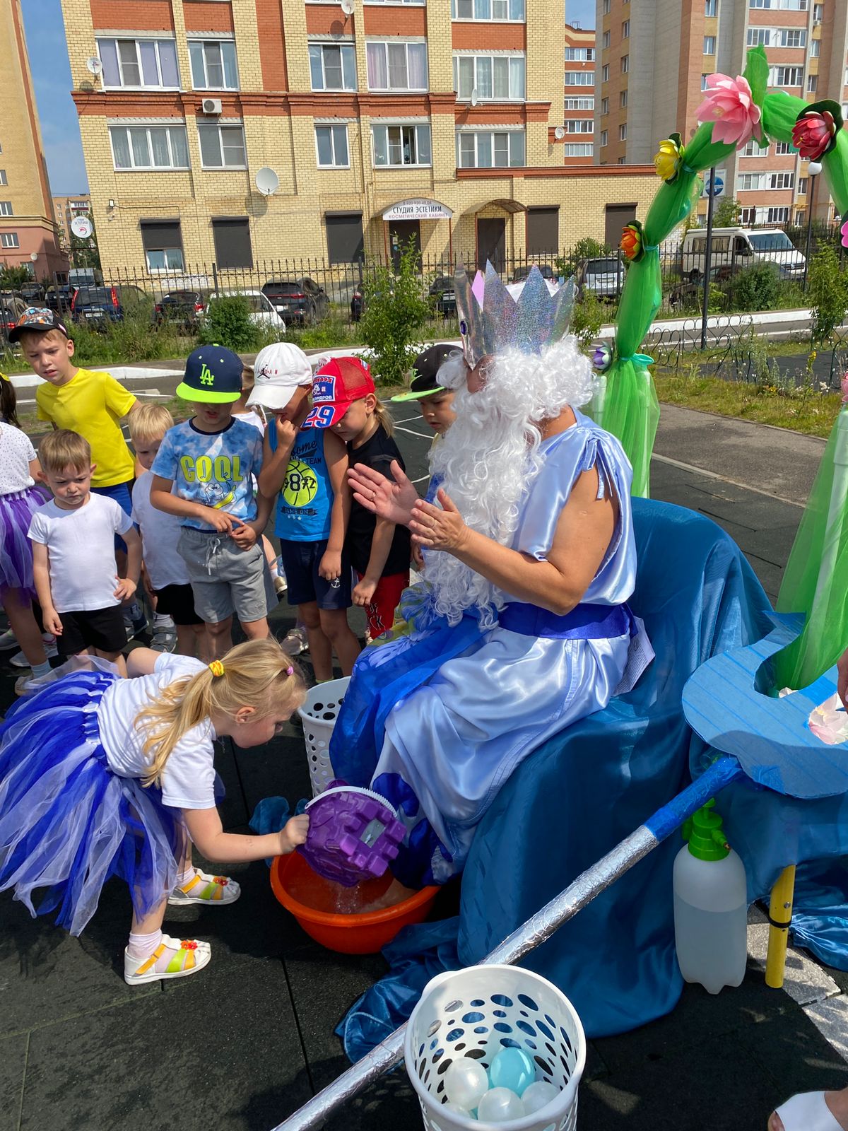 В гости к детям пришел царь морской Нептун, да не один, а с дочерьми Русалочками!! Удивительный праздник подарил Нептун ребятам в жаркий летний день!