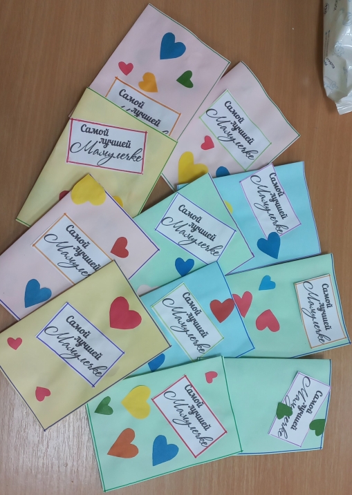 Трогательным моментом стало вручение красочных поздравительных подарков, сделанных детьми, в которые они вложили всю свою любовь.
