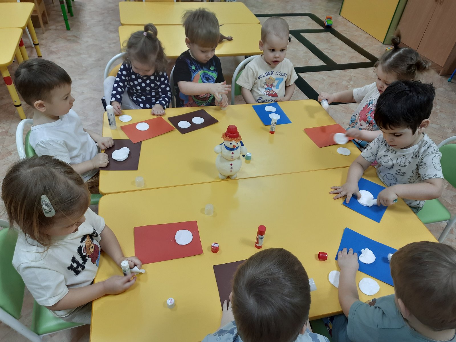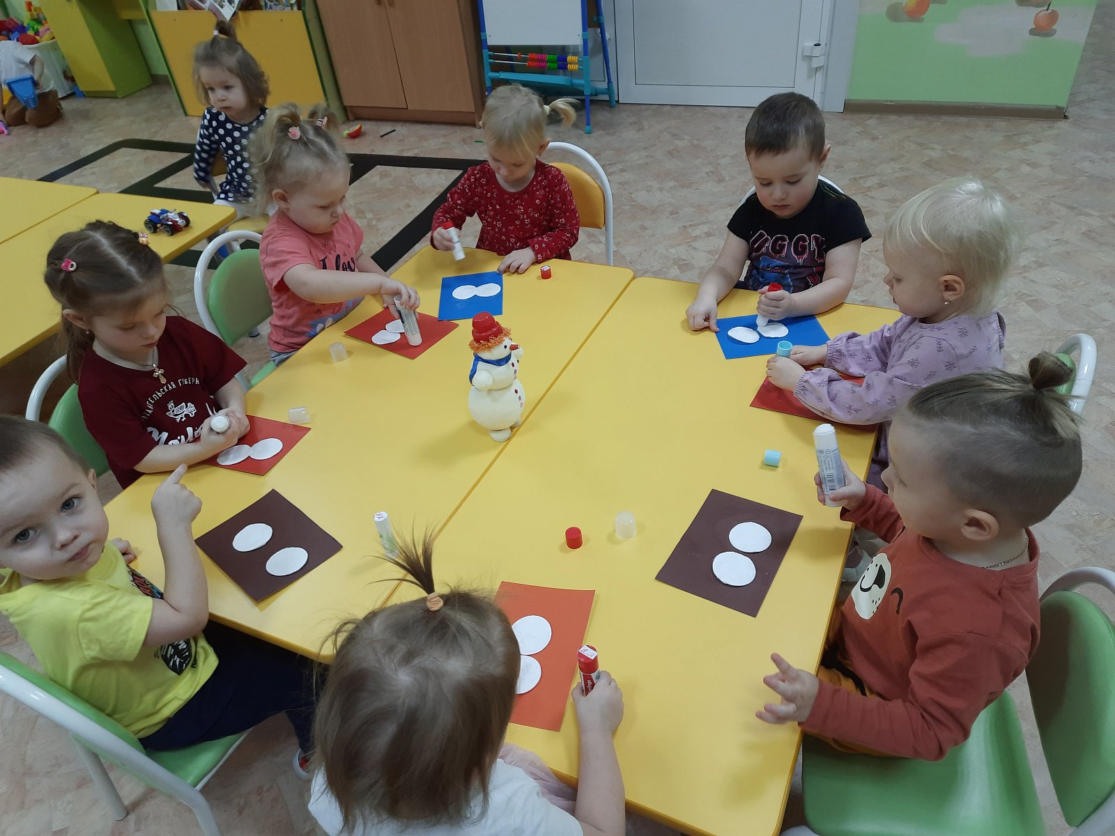 В День Рождения принято дарить подарки, вот ребята и сделали для Снеговика маленьких снеговичков!