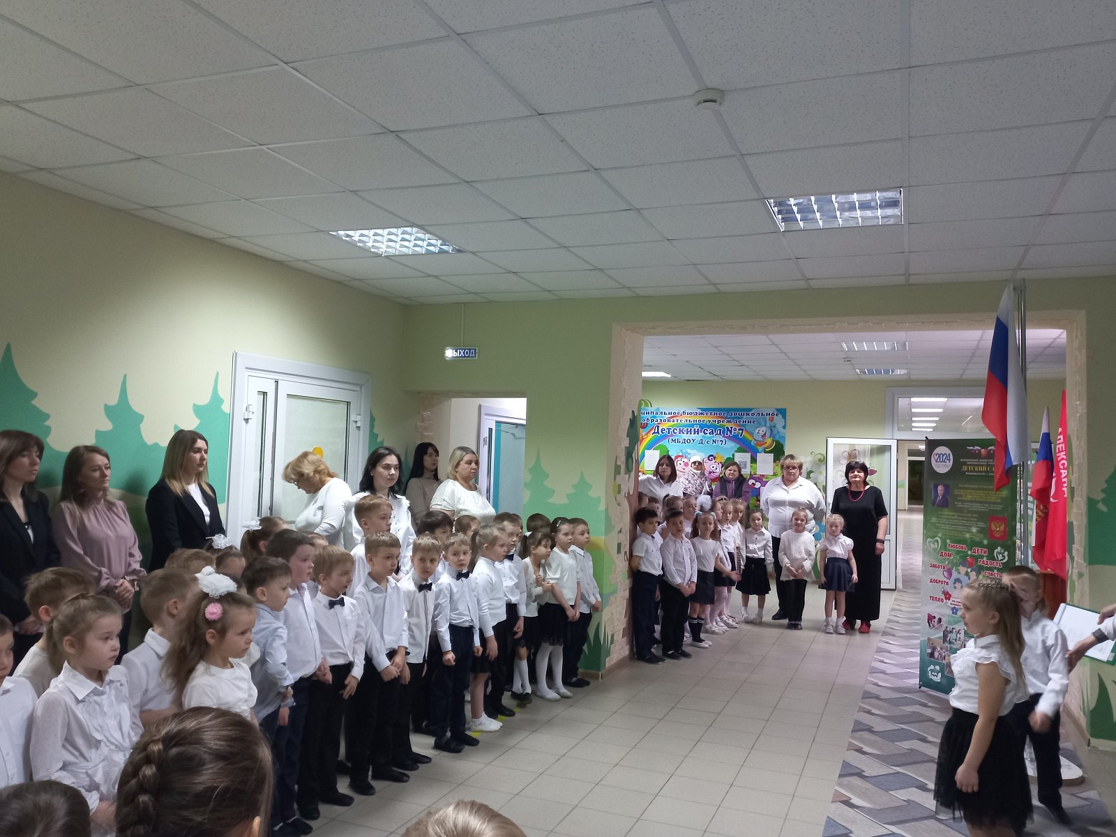 Дети, педагоги и гости мероприятия ознакомились с целями, задачами и особенностями Года семьи, прочли стихотворения о семье, традиционно подняли флаг страны и спели гимн. Перед собравшимися выступила заведующий МБДОУ Детский сад №7 Попова Ольга Семеновна.