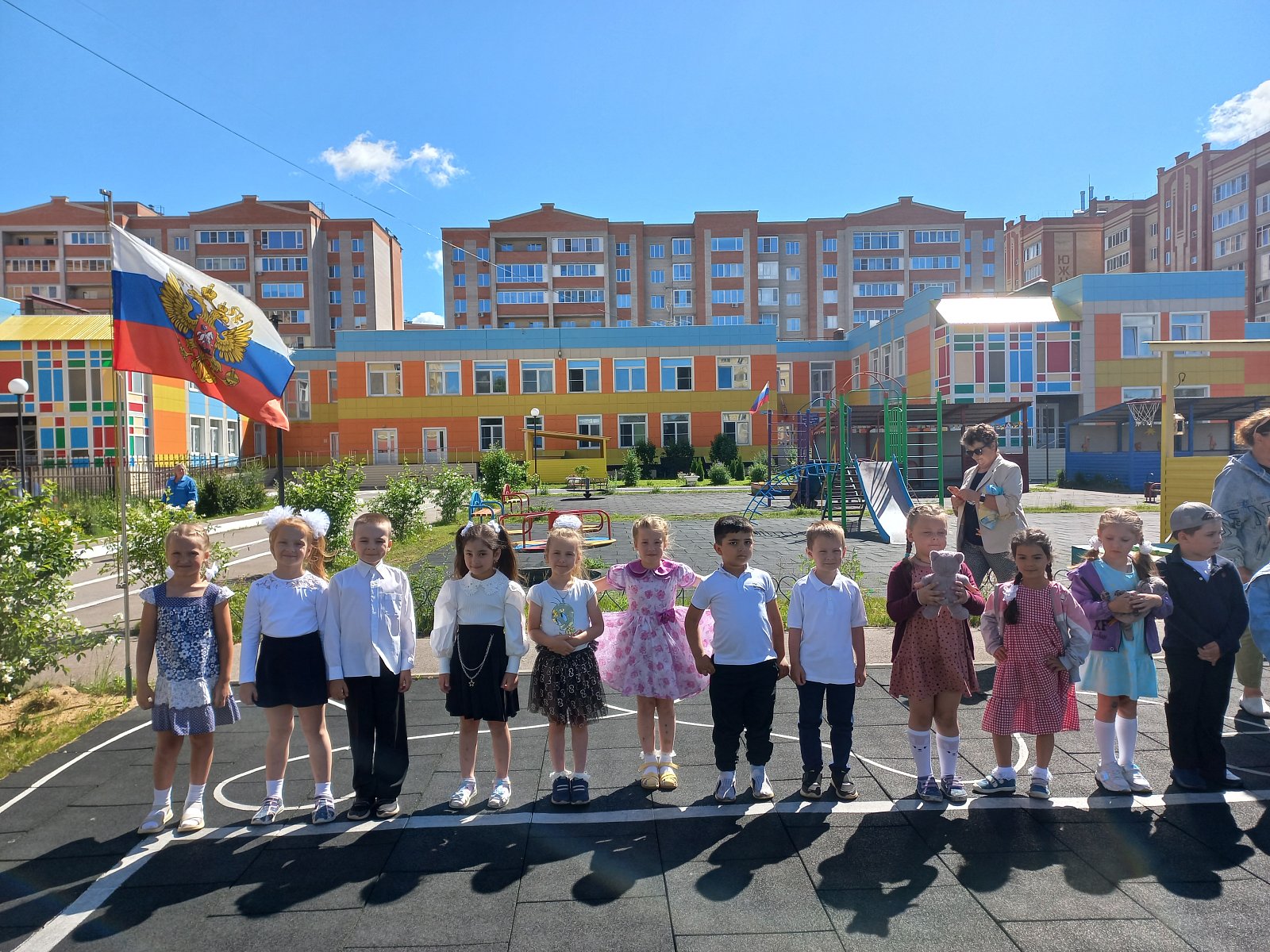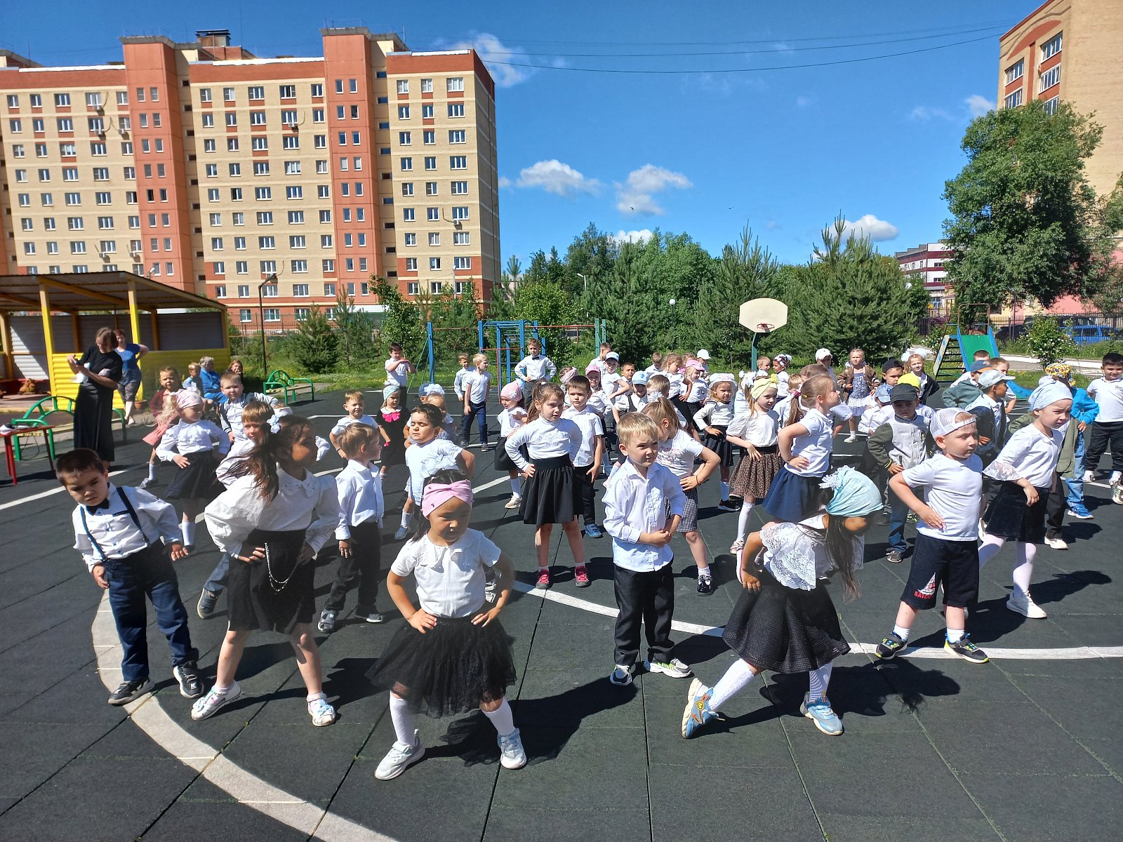 В нашем детском саду №7 прошла торжественная линейка. Дети отметили эту дату минутой молчания, слушали песню "Вставай, страна огромная!», звучали военные песни и стихи, педагоги и дети исполнили наполненный скорбью танец «Дети Войны».