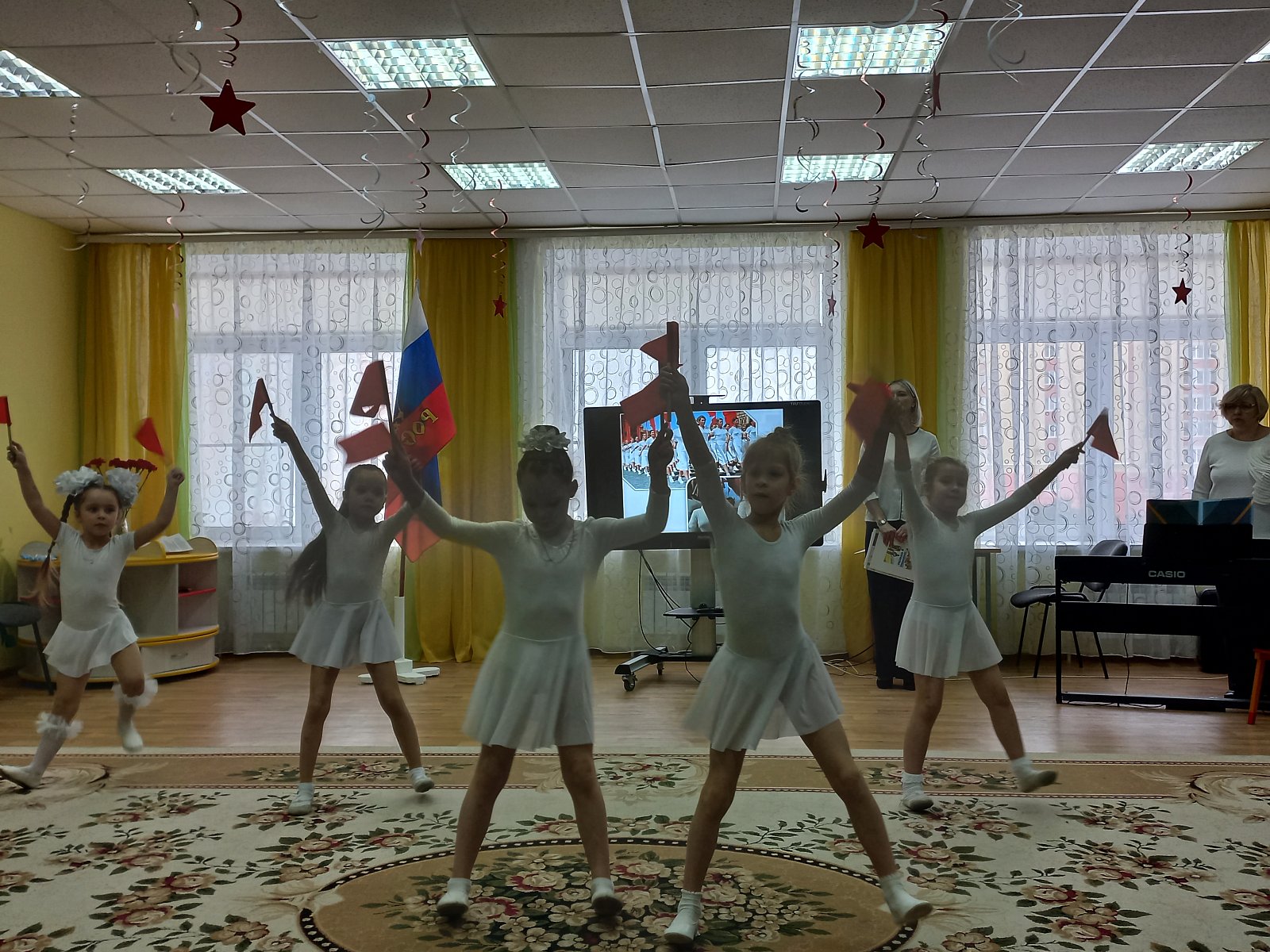 Утро началось с торжественного исполнения гимна России. Дети из старших и подготовительных групп с гордостью исполнили этот важный ритуал, символизируя единство и патриотизм.