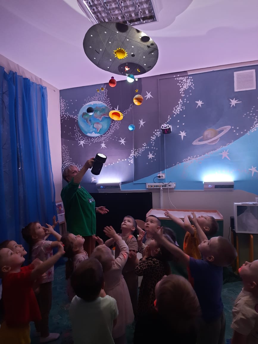 Во время занятия ребята не только получали новую информацию, но и с большим удовольствием собирали ракету, смотрели мультфильмы о планетах и их особенностях, разгадывали загадки. Очень запоминающимся было «космическое путешествие» в сенсорной комнате, с «полетом» на Луну в гости к Лунтику. Дети получили отличный заряд положительных эмоций. Космическое путешествие удалось на славу!